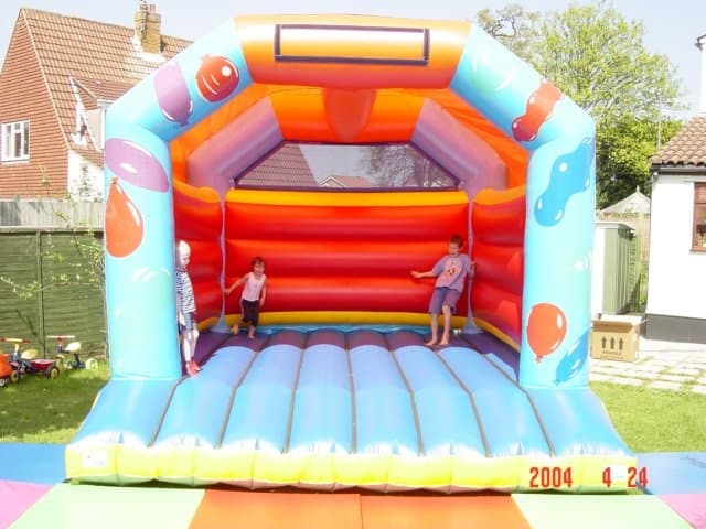 A frame bouncy castles are normally with a roof. A roof can be attached with a Velcro or stitched for extra safety. They have the front entrance with landing steps in front.